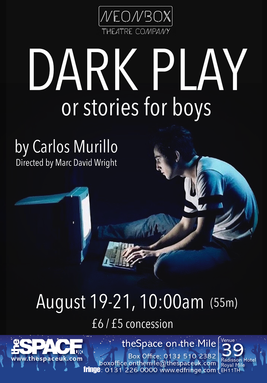 “Dark Play or Stories for Boys” is only on ONE more time at the Fringe. 21st August at 10am, theSpace on the Mile.